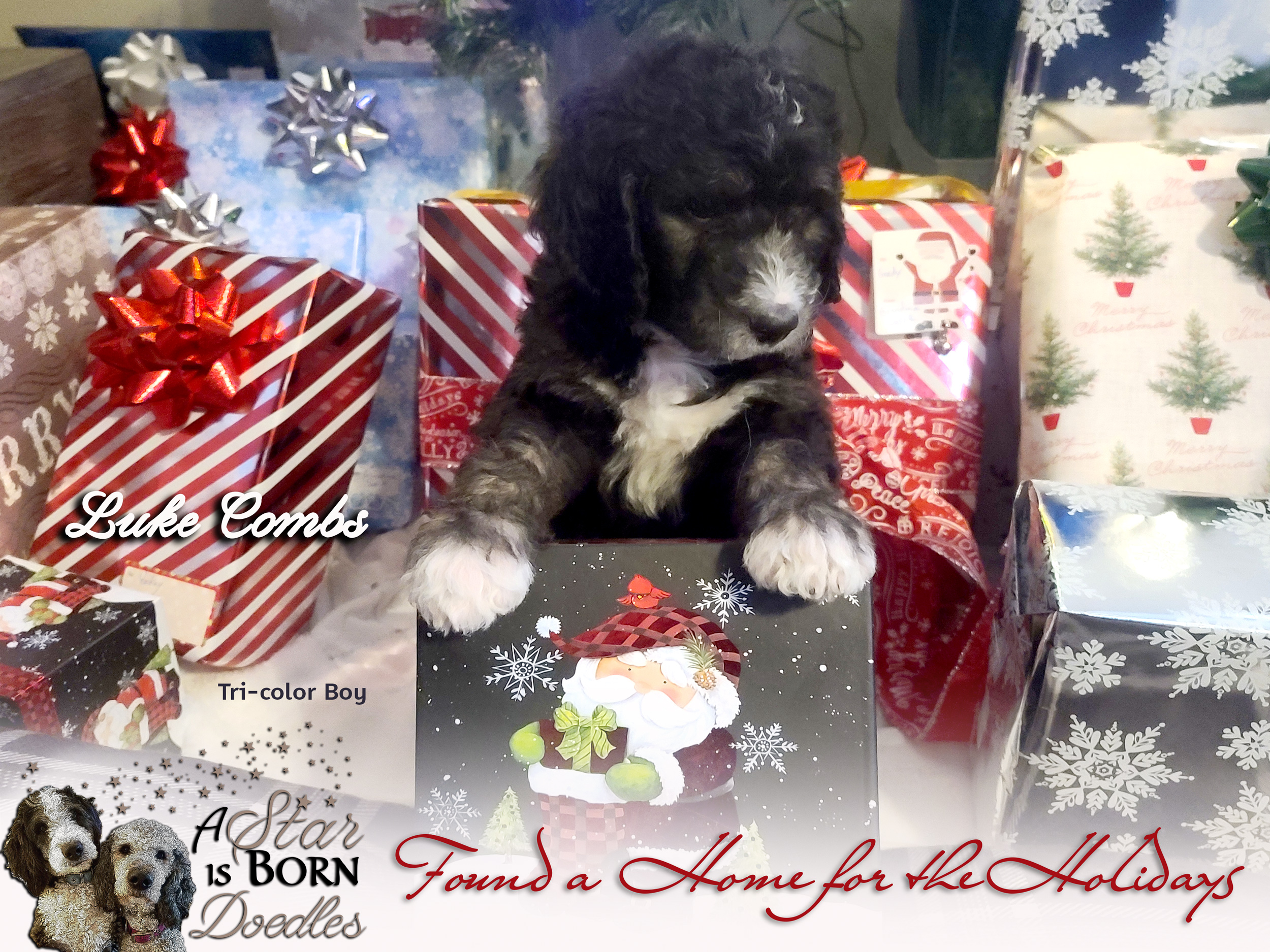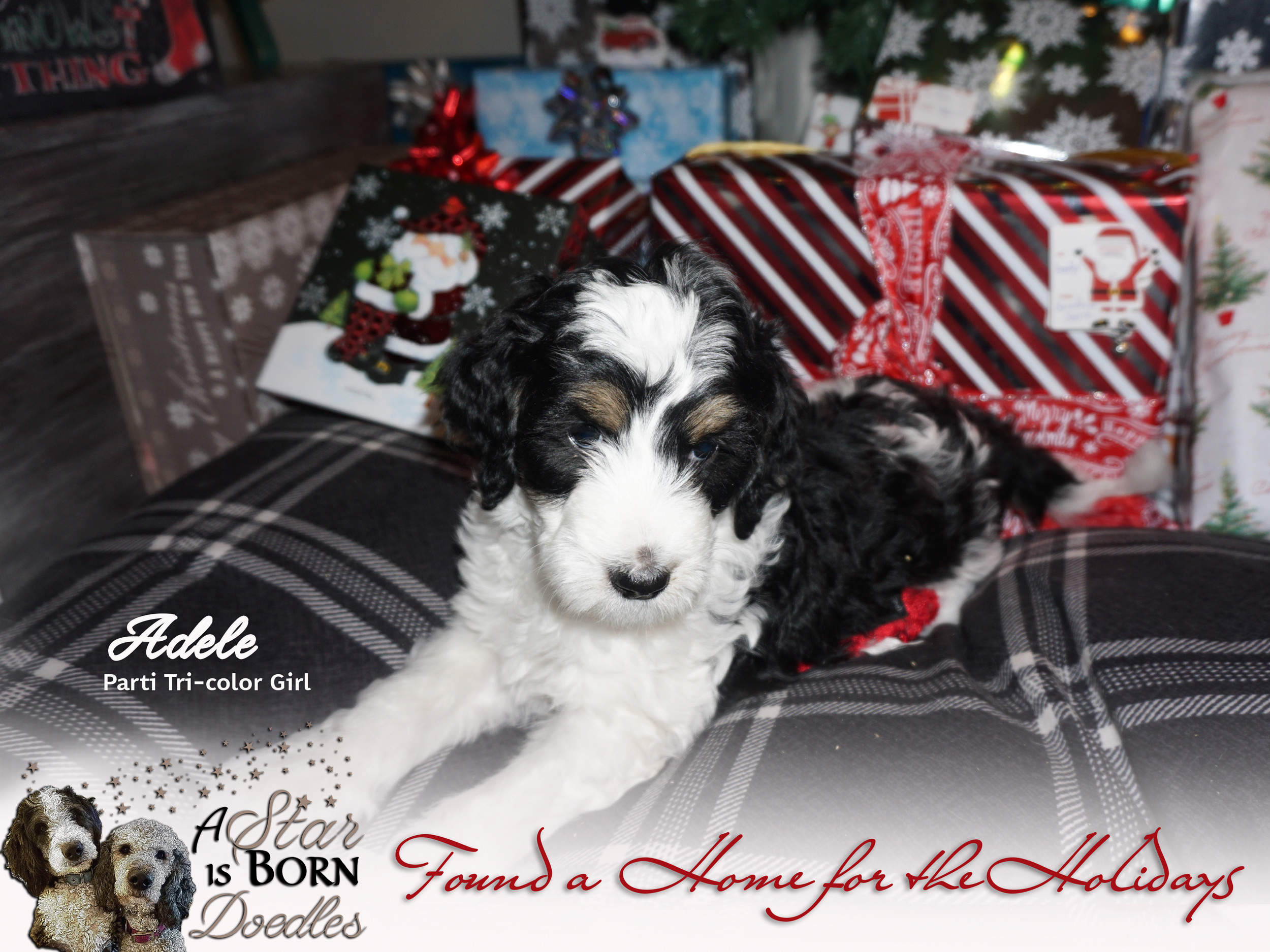 LADY GAGA (F1 TRI-COLOR BERNEDOODLE) meets and falls in love with & BRADLEY COOPER (SABLE TUXEDO STANDARD POODLE). Puppy Premier November 5, 2020. Puppies will be 45-55 pounds full grown with low to no shedding coats. Puppies will be ready to go to their forever homes late December. We are taking reservations now for this litter.