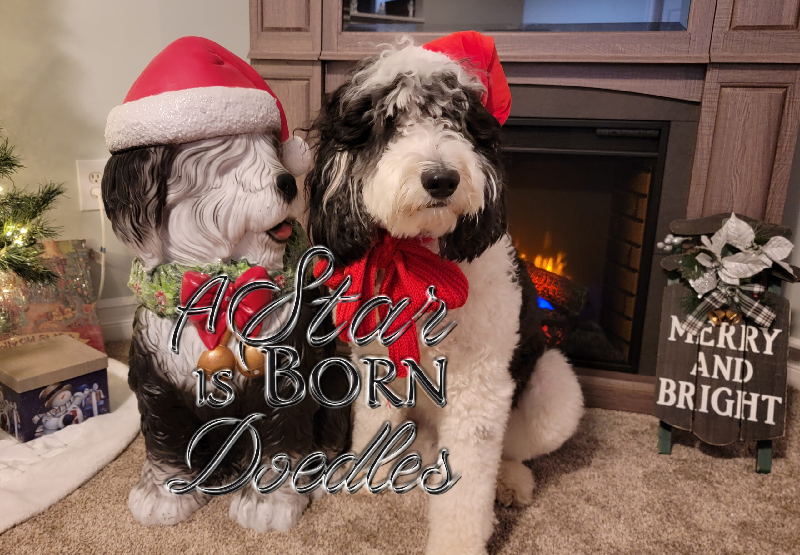 A Star is Born Adele Quinn, the goofy yet highly intelligent F1B Bernedoodle daughter of Bradley Cooper & Lady GaGa. She is 75% Poodle and 25% Bernese Mountain Dog. “Quinn” has been genetically tested and is clear of genetic disease. Her hips and elbows have been OFA certified. Quinn weighs 57 pounds and is 25″ tall. She has a goofy personality and non-shedding, silky soft coat. She loves to play and thinks she is a 25 pound lap dog.